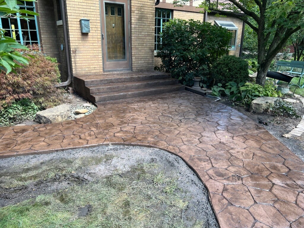 Transform your outdoor spaces with our stunning Roman slate impressions, expertly crafted for a timeless and elegant look. We meticulously create these impressions on concrete, achieving a beautiful, random stone appearance with a light gray release for a natural, nuanced finish. To ensure long-lasting beauty and protection, we utilize TK bright sealant, ideal for ceilings and other exposed surfaces. Looking for an alternative to a traditional patio? We also specialize in custom deck construction. If you'd prefer the elevated feel and design flexibility of a deck, we're happy to discuss that option and create a bespoke outdoor living area to perfectly suit your needs and style.